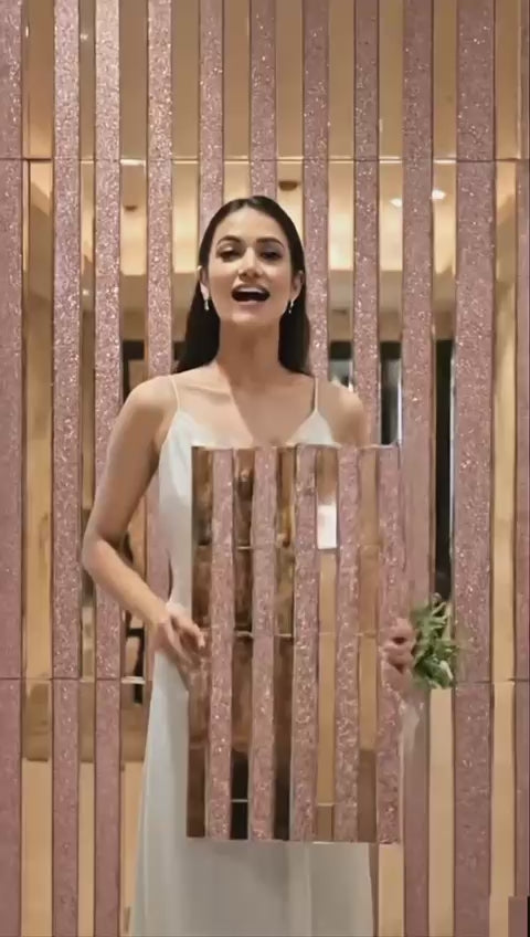 Self adhesive Mosaic Rose Gold Fluted Mirror Panels (Min 12PCS) (Size 12x24 inches)